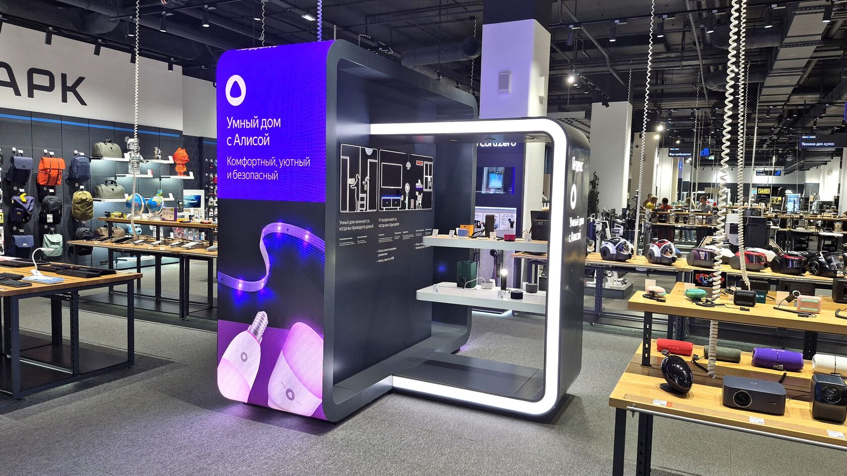 Interactive Yandex/Smart Home with Alice brand space in 'Technopark' store inside 'Metropolis' shopping mall