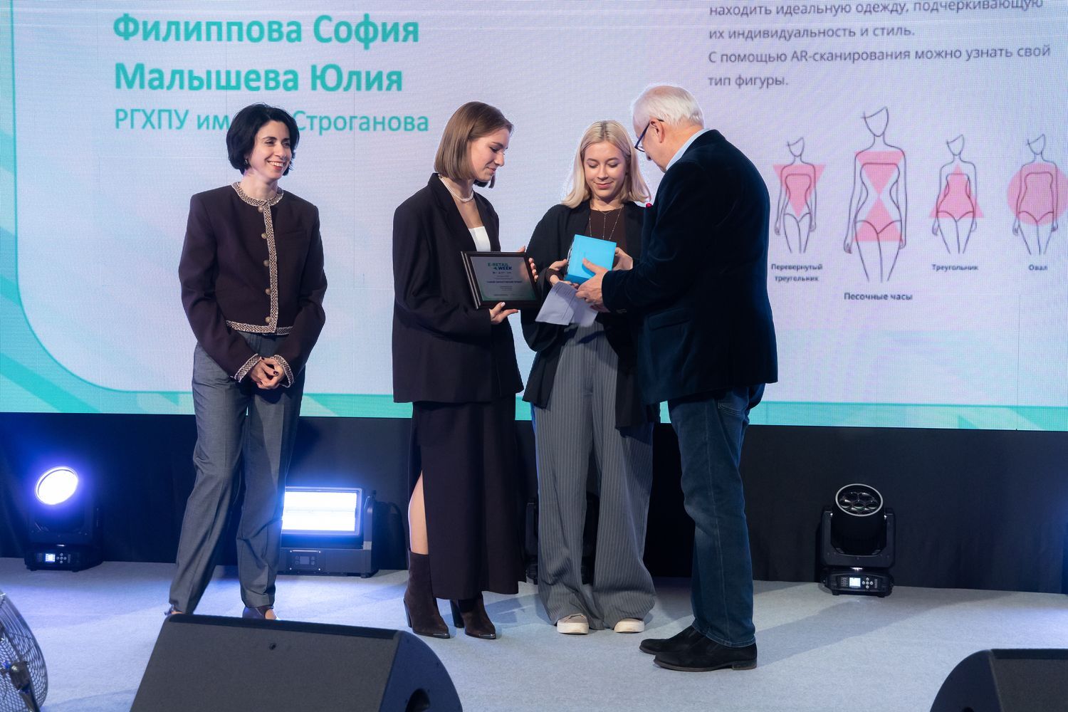 София Филиппова и Юлия Малышева из РГХПУ им. С.Г. Строганова нашли способ повысить уверенность покупательниц и удовлетворённость от покупки за счёт определения типа фигуры и последующего подбора одежды с учётом этого параметра и получили приз "САМЫЙ ЭФФЕКТИВНЫЙ ПРОЕКТ".